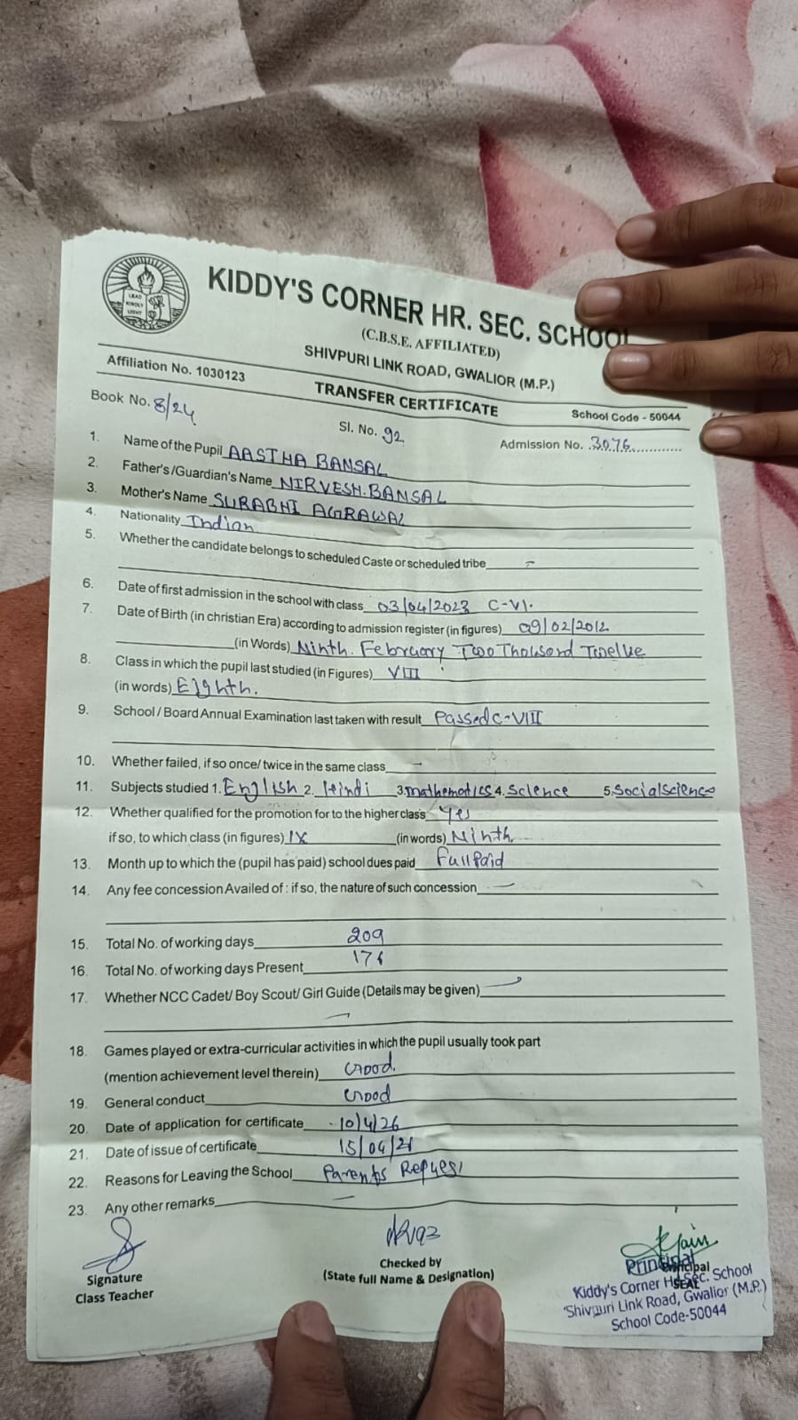 - VASHIK VOHRA CLASS X