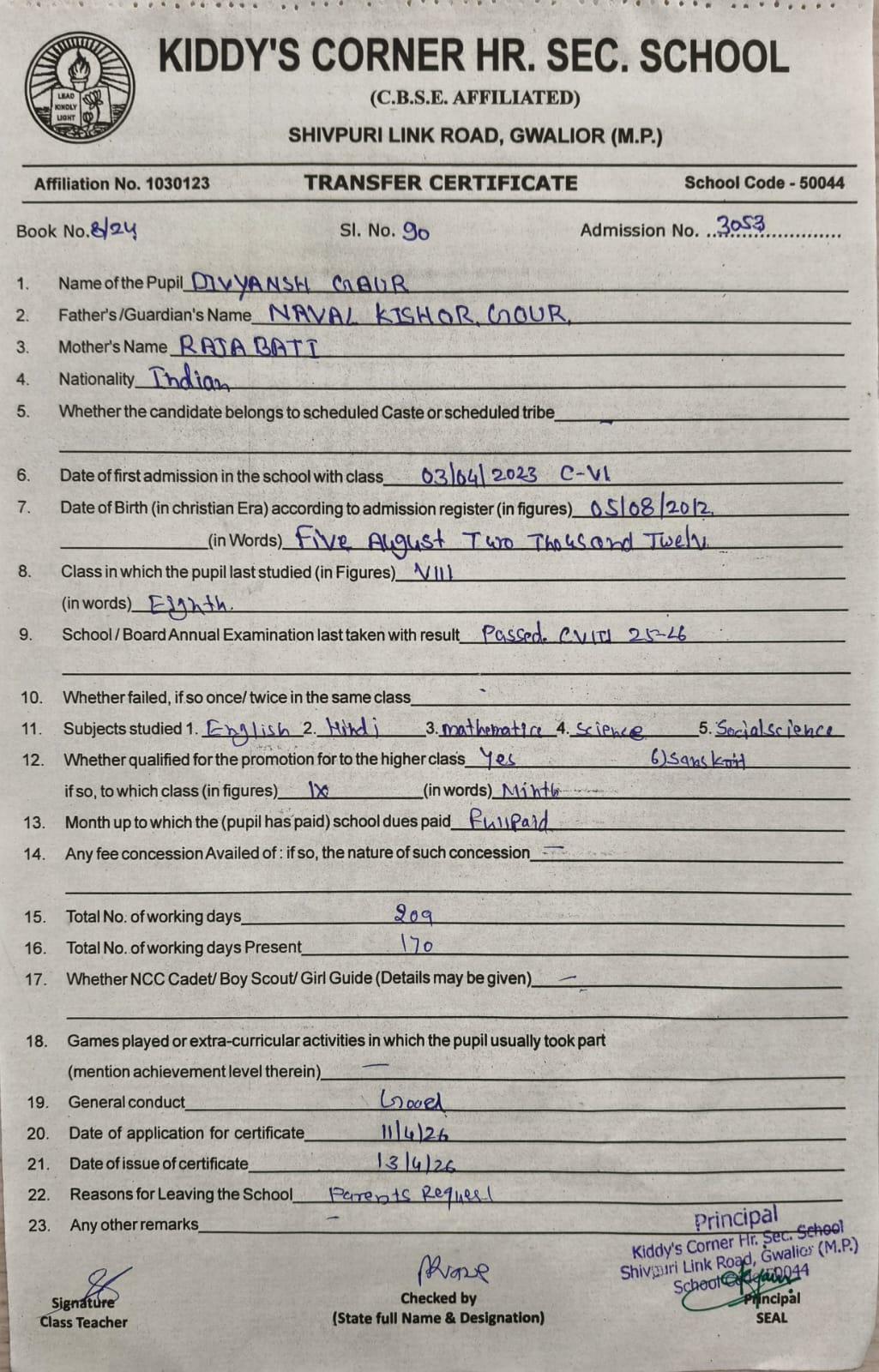 - DHEERENDRA SINGH PARIHAR CLASS IX