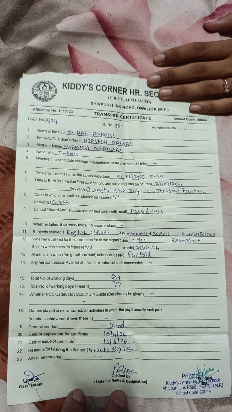 - PALLAVI GUPTA CLASS VI