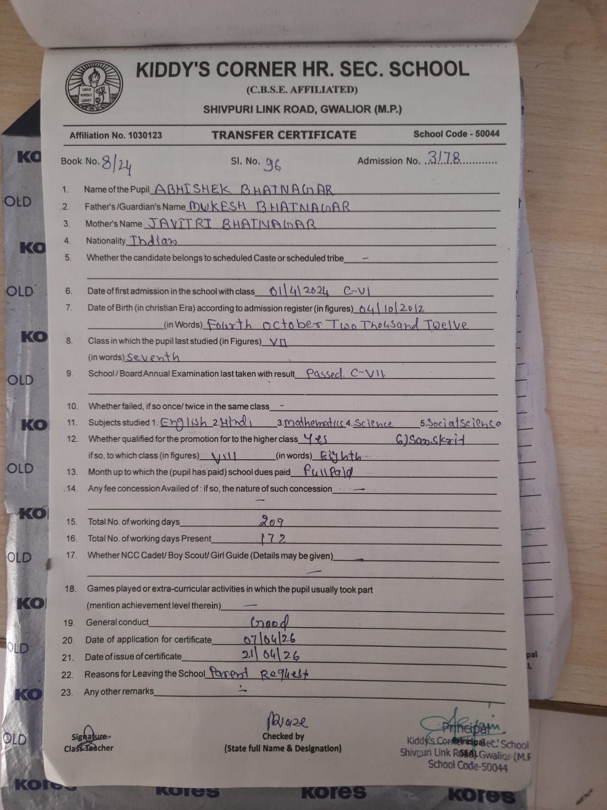 6. ABHISHEK BHATNAGAR CLASS VII