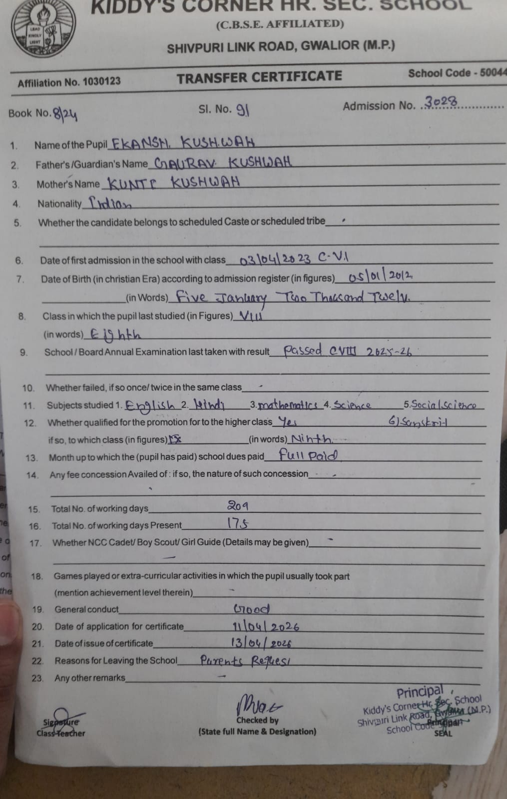 - kushagra dubey class ix